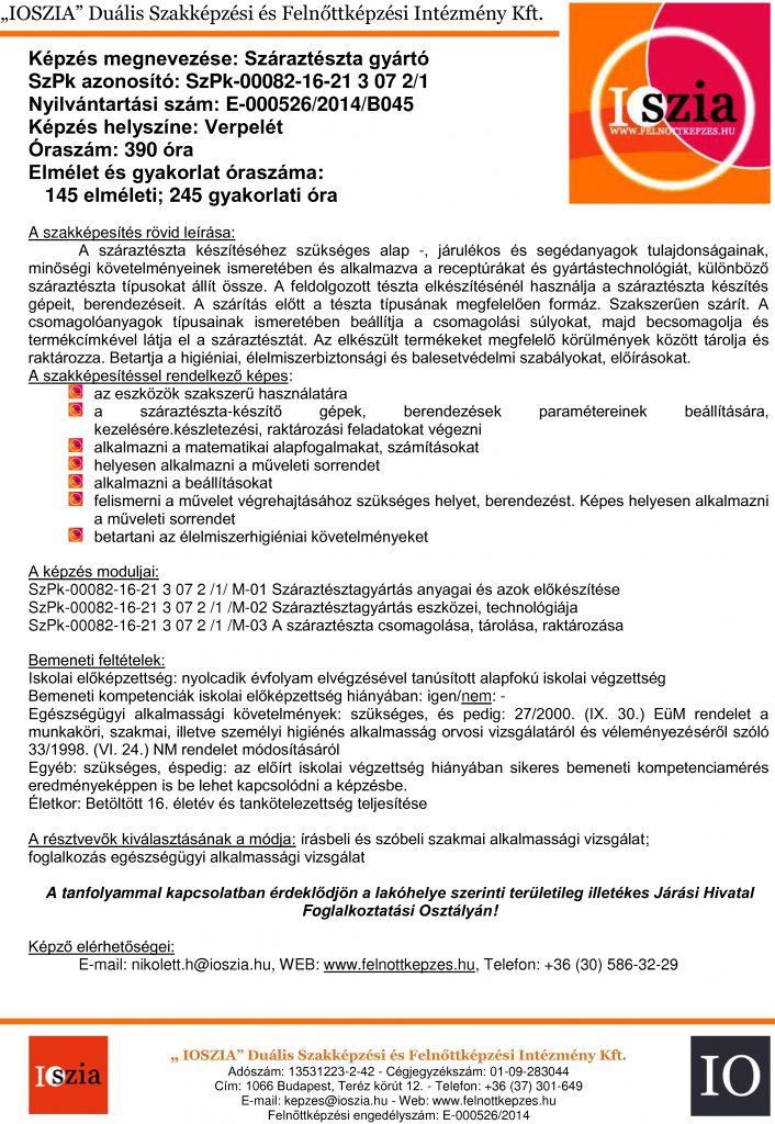 E-mail: nikolett.h@ioszia.hu, WEB: www.felnottkepzes.hu, Telefon: +36 (30) 586-32-29